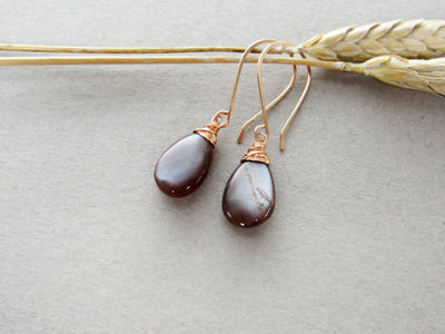Chocolate Moonstone & Rose Gold Drop Earrings