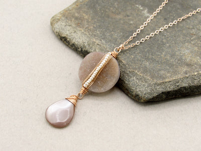 Luxe Brazilian Druzy & Peach Moonstone Necklace