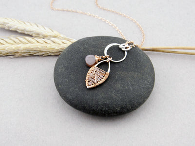 Peach Moonstone Leaf Charm Necklace