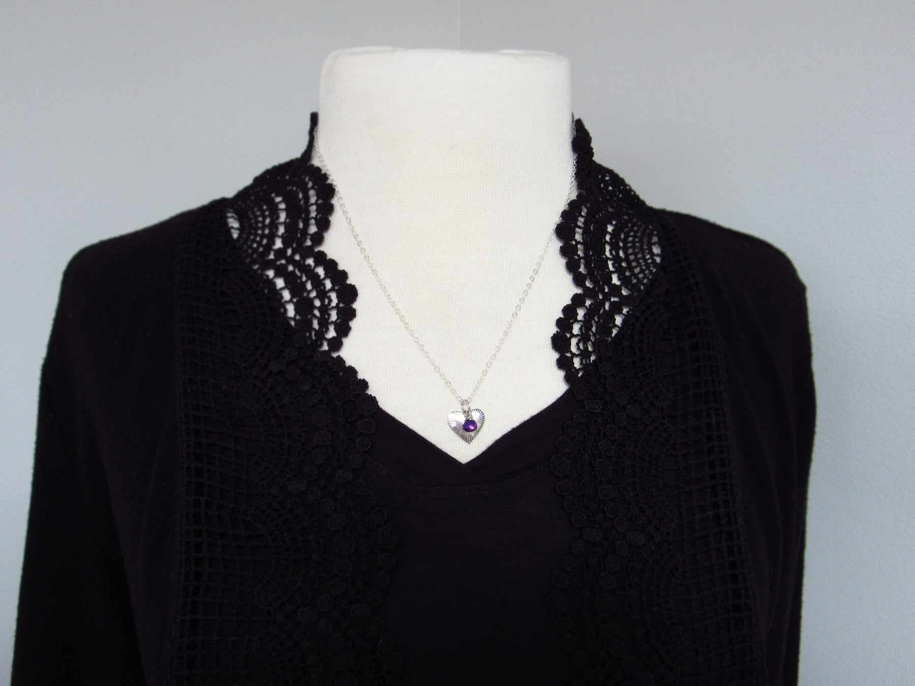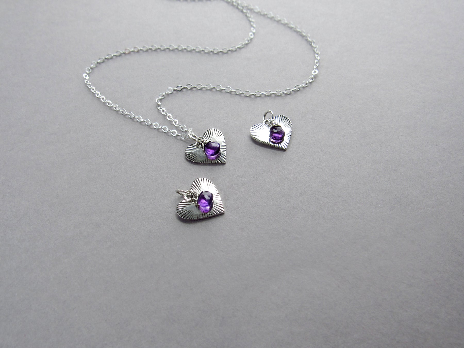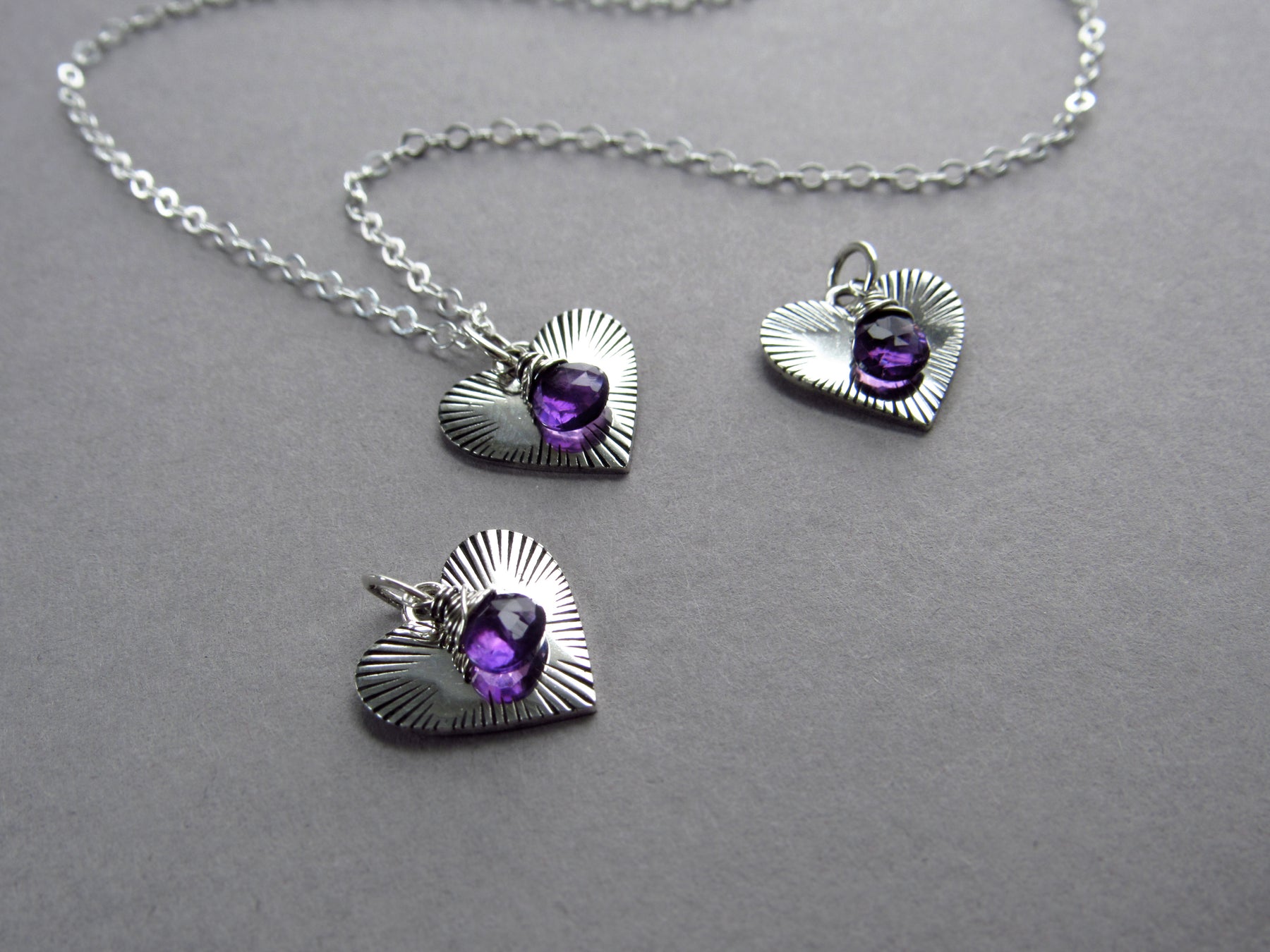 Add a bit of love to your neckline with this dainty amethyst and silver heart charm! *This listing is for the charm only. Follow this link if you'd like to purchase a chain: https://www.brendamcgowanjewelry.com/products/dainty-sterling-silver-cable-chain