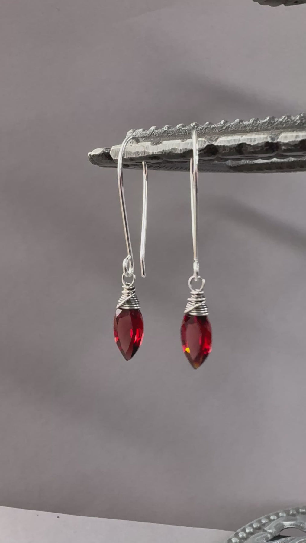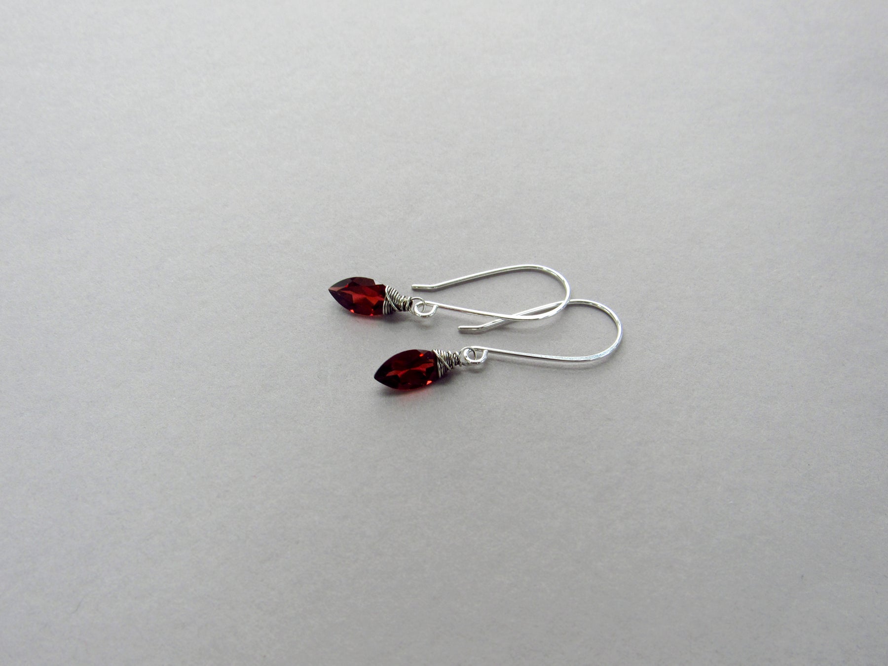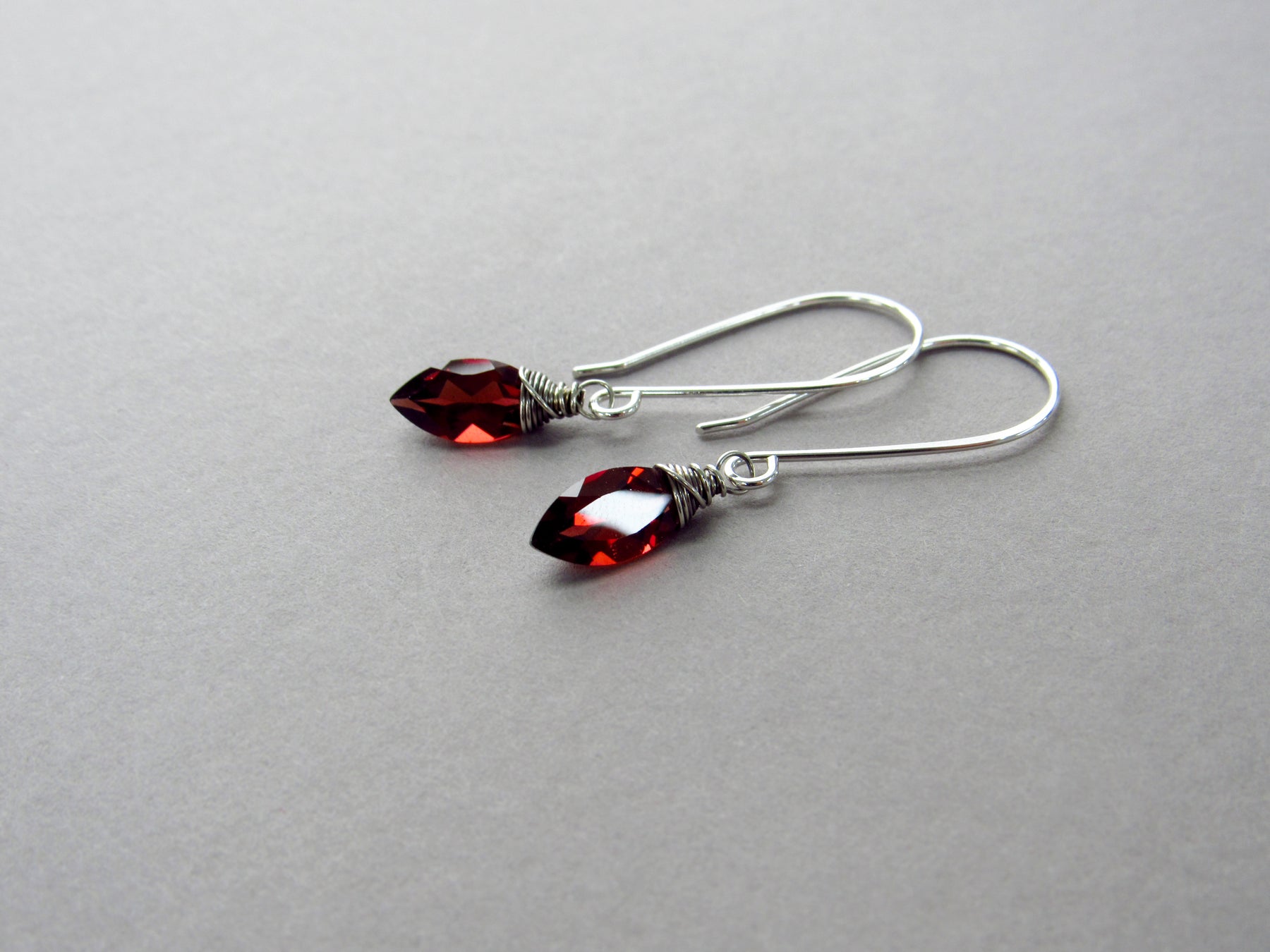 Elegant drop earrings featuring gorgeous, marquise cut garnet.