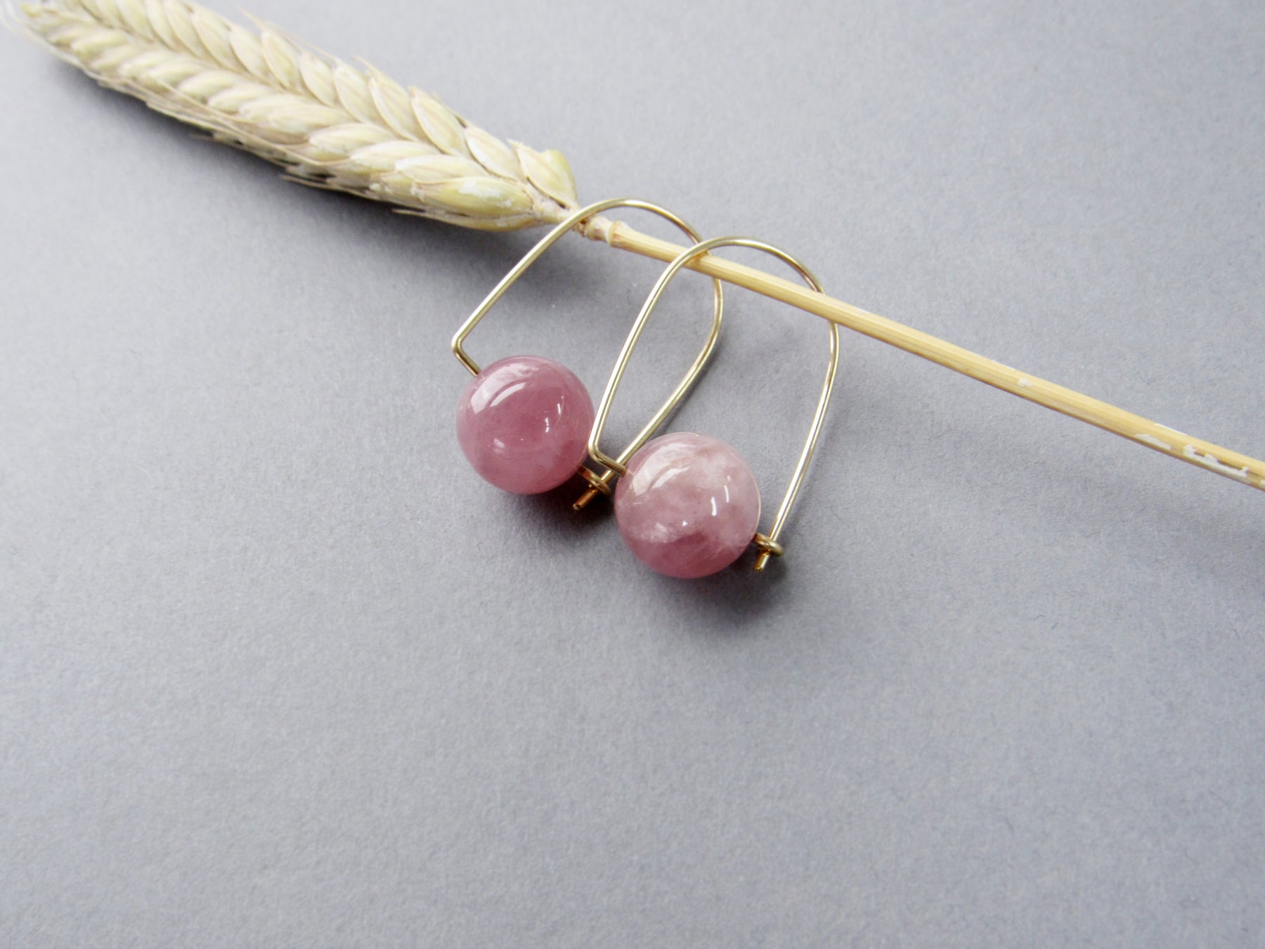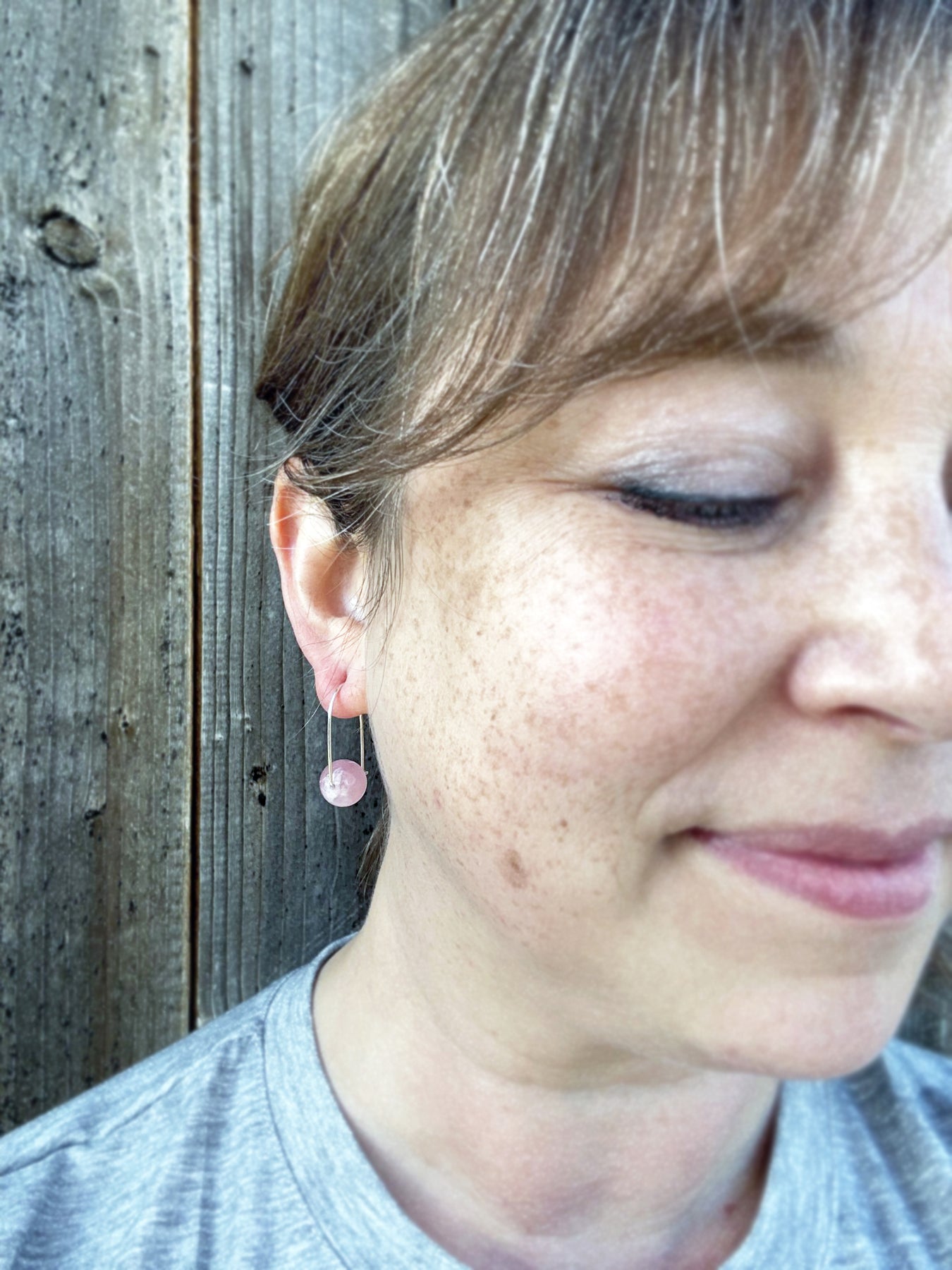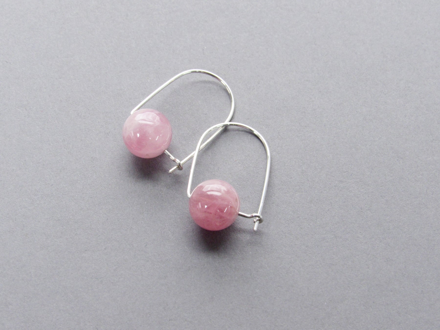 A lightweight, fun, and casual hoop style earring featuring lovely rose quartz! This latch back hoop is perfect if you want something a little more secure than a traditional hook style ear wire.