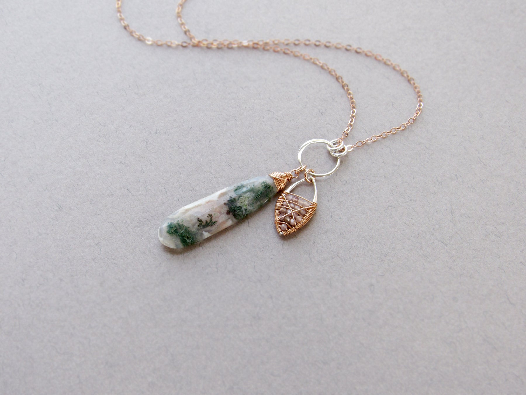 The charms attach to a silver ring and lovely rose gold filled chain.  *One-of-a-kind.