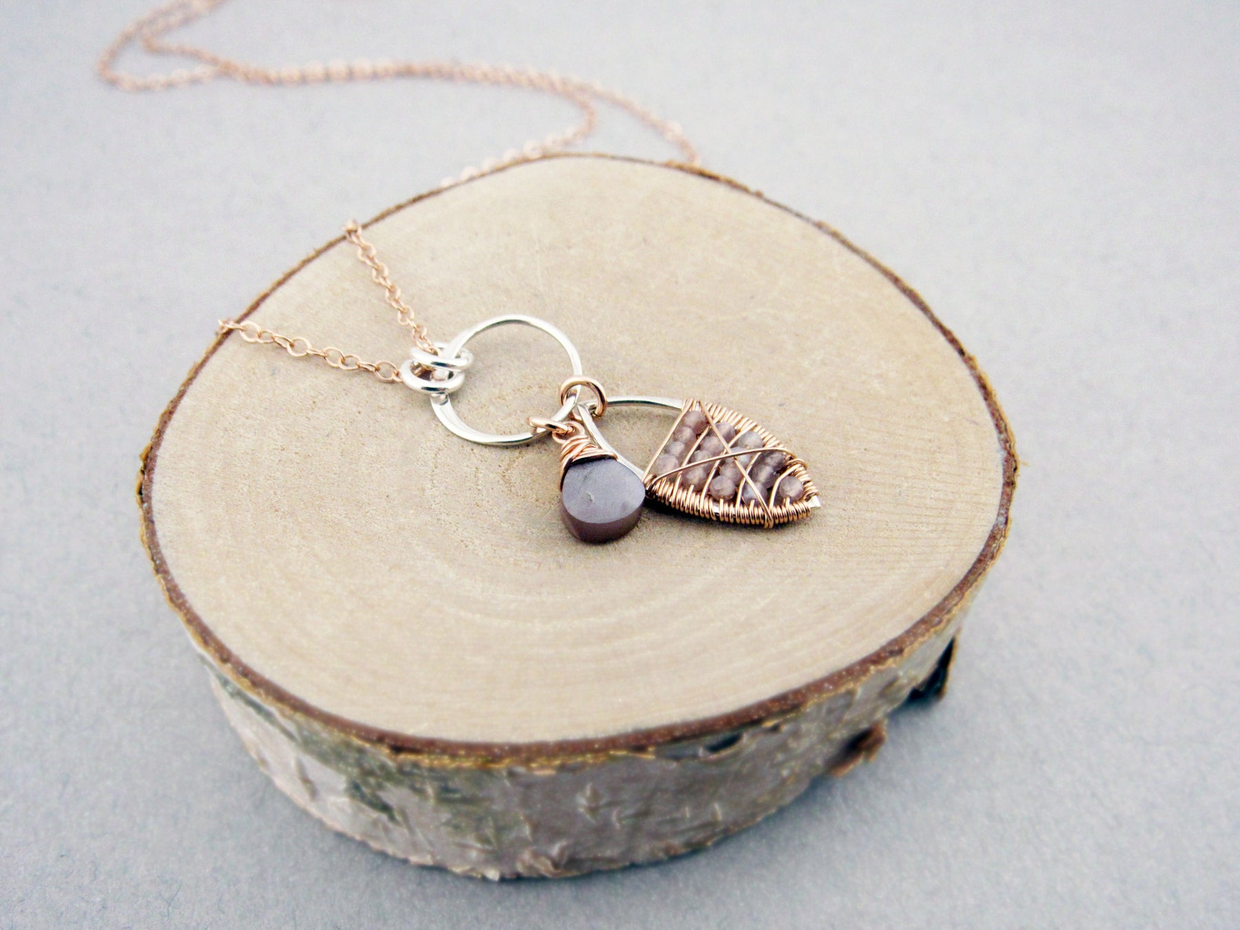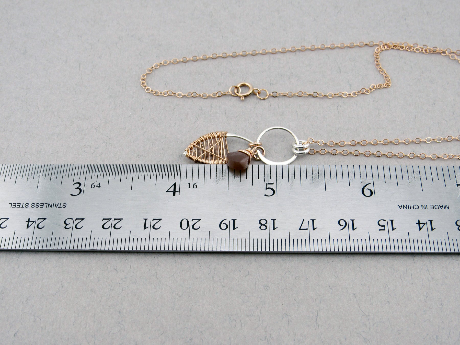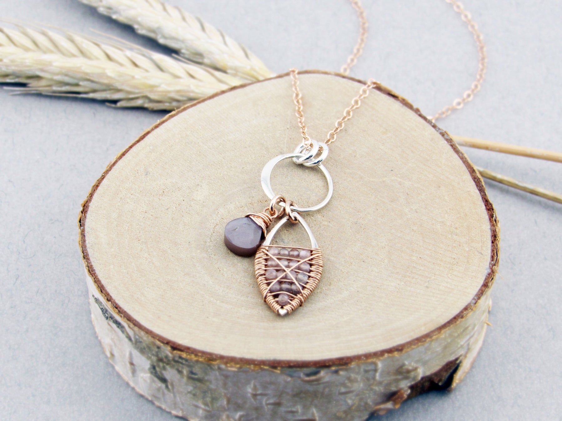 Materials: 14k rose gold fill, sterling silver, and peach moonstone.