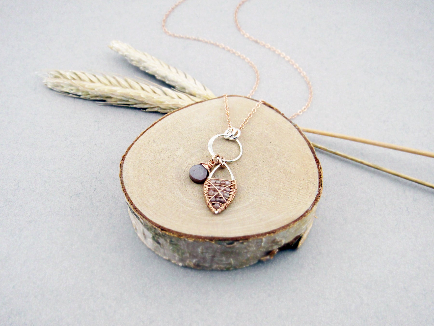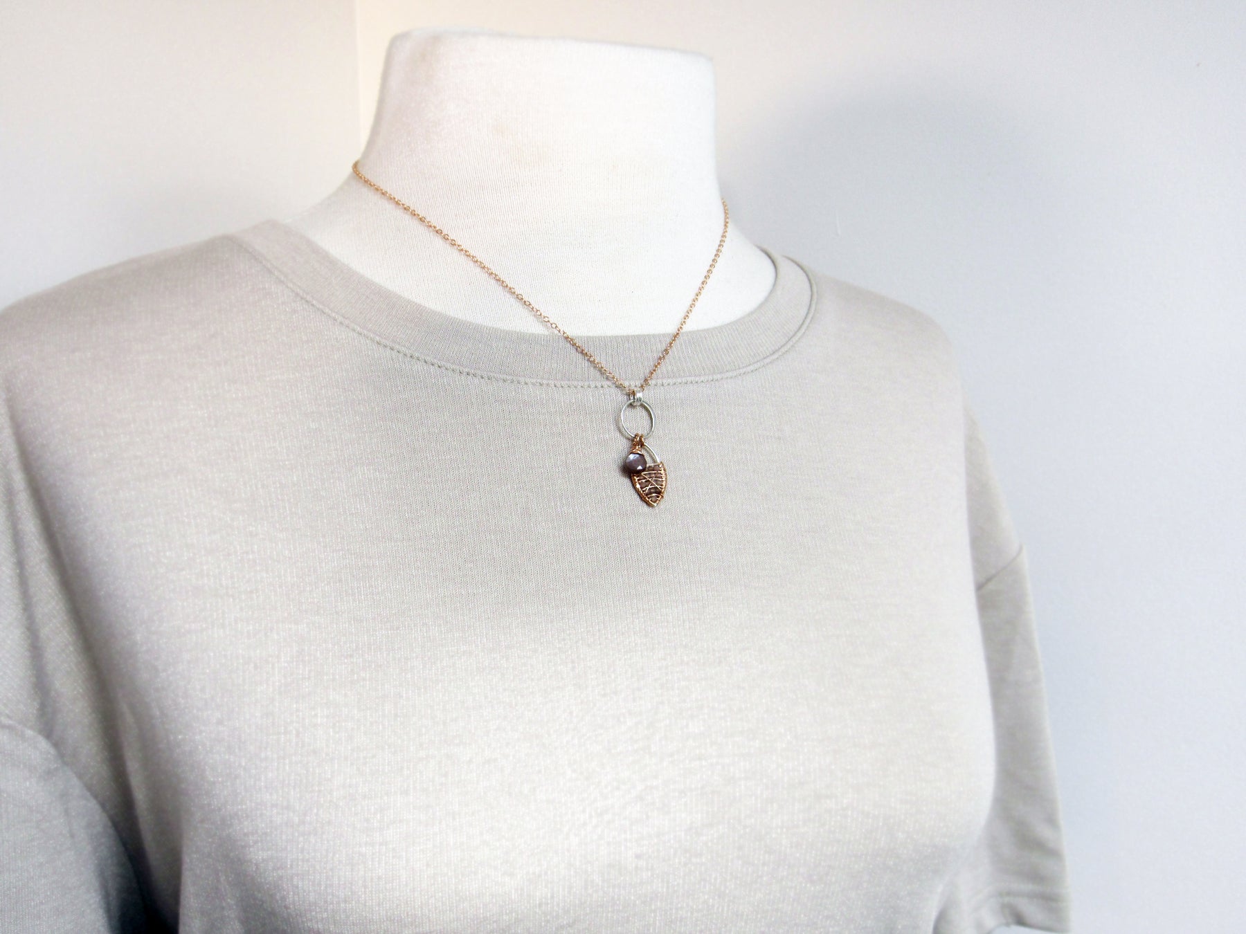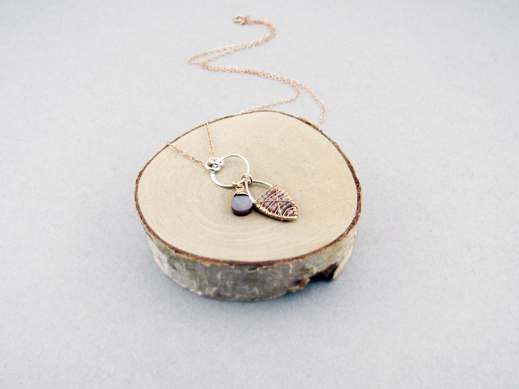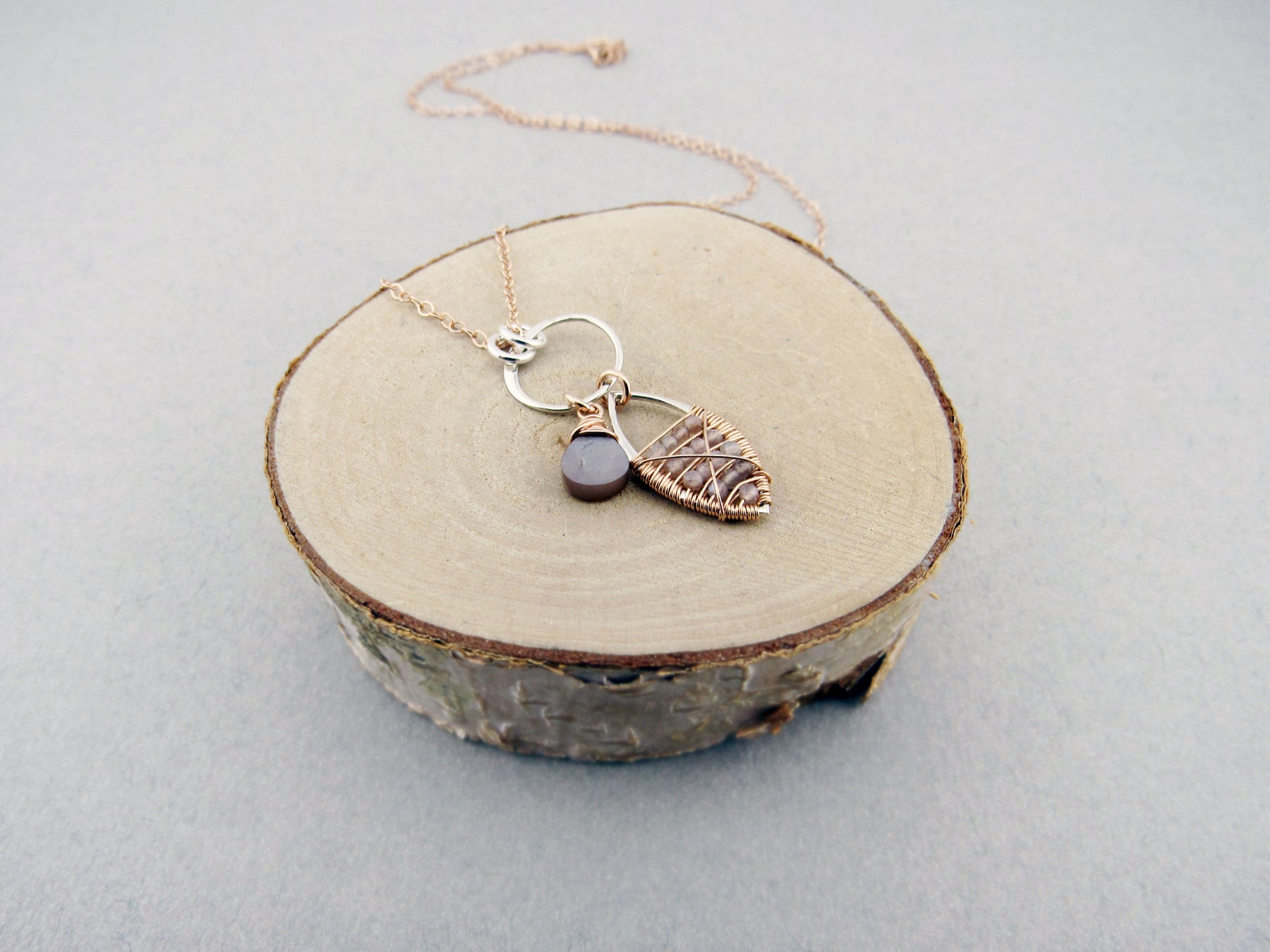 Materials: 14k rose gold fill, sterling silver, and peach moonstone.