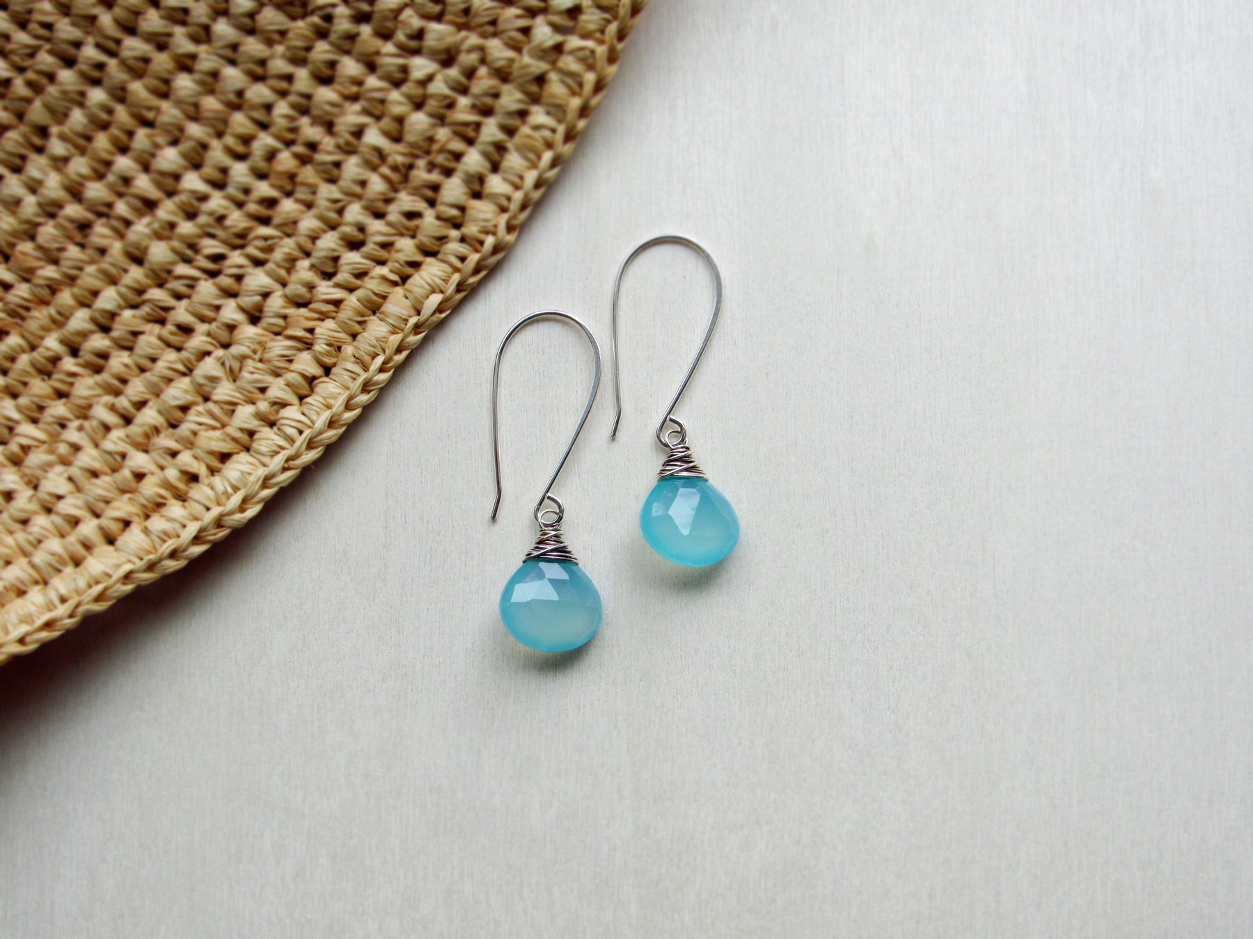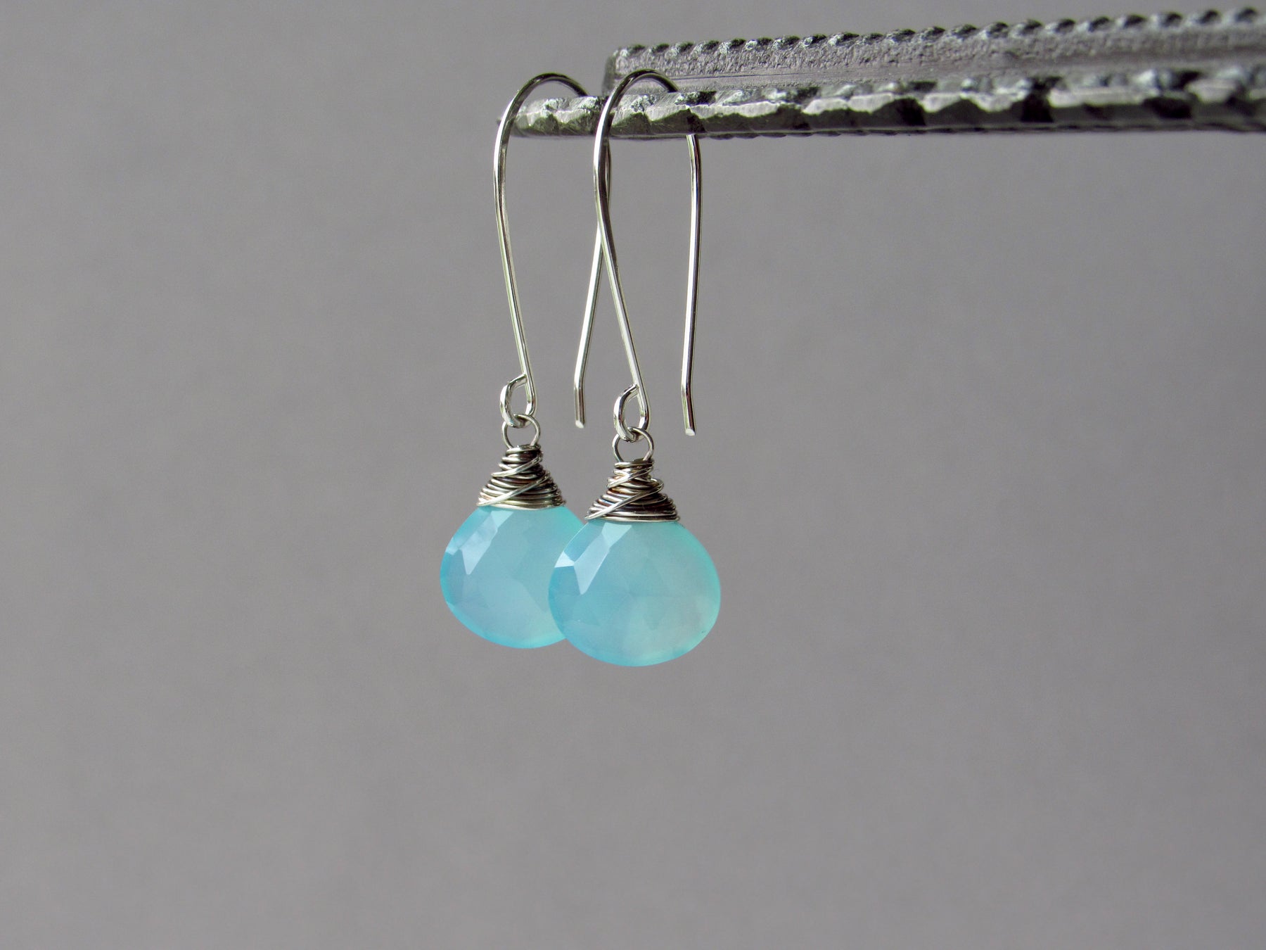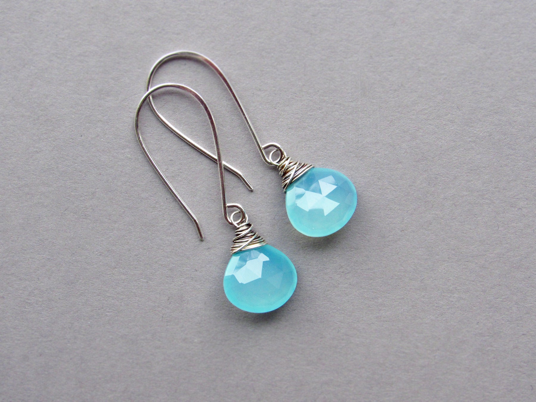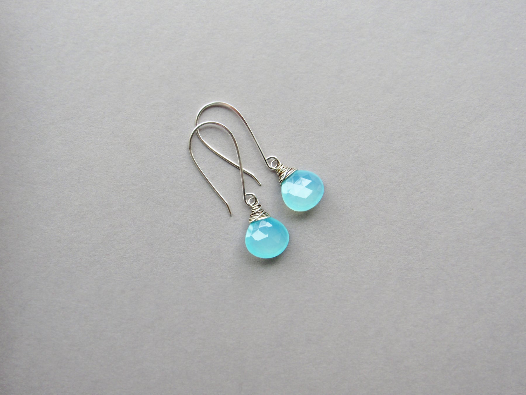 These earrings feature luminous aqua blue chalcedony gemstone drops!  This style is lightweight and wonderful for every day wear.