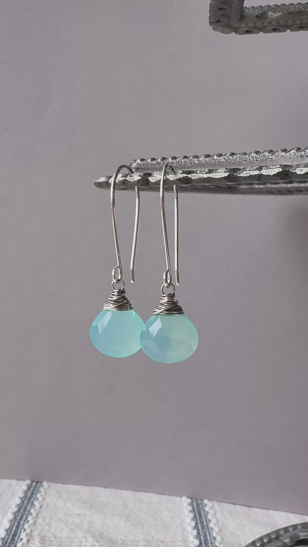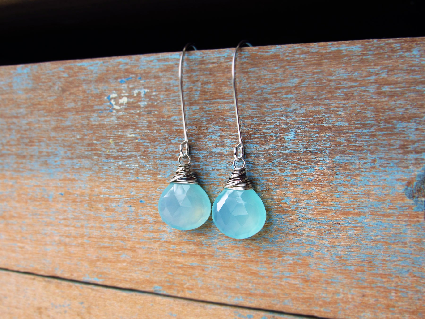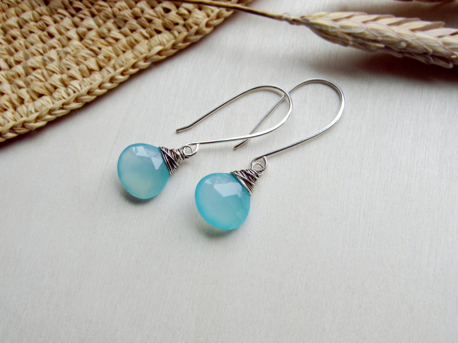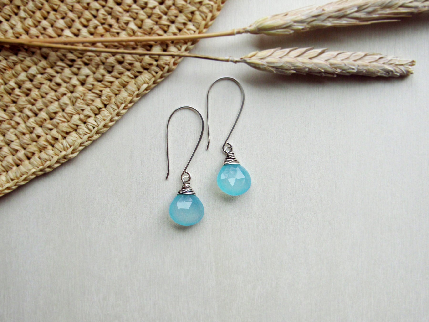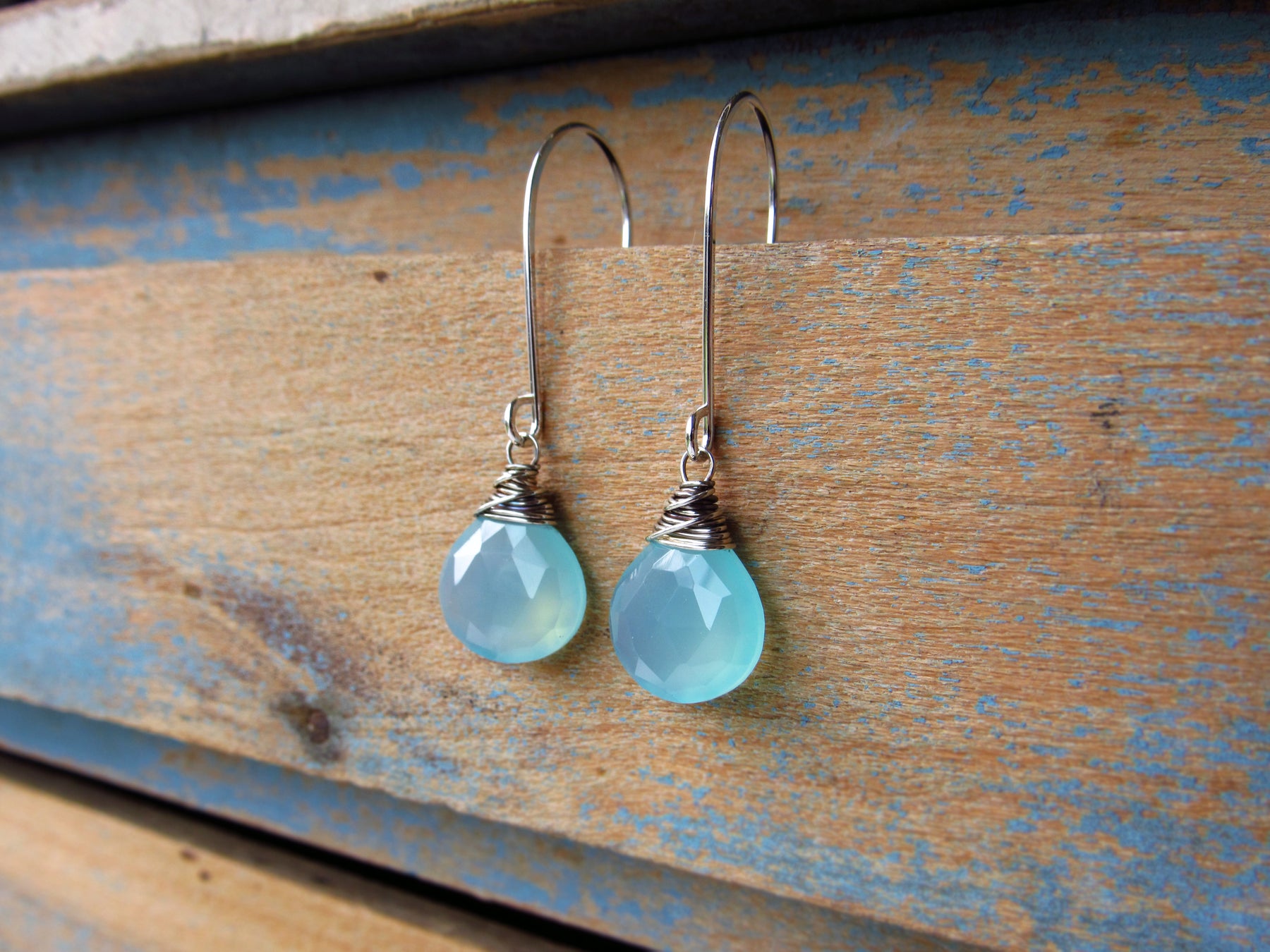 These earrings feature luminous aqua blue chalcedony gemstone drops!  This style is lightweight and wonderful for every day wear.