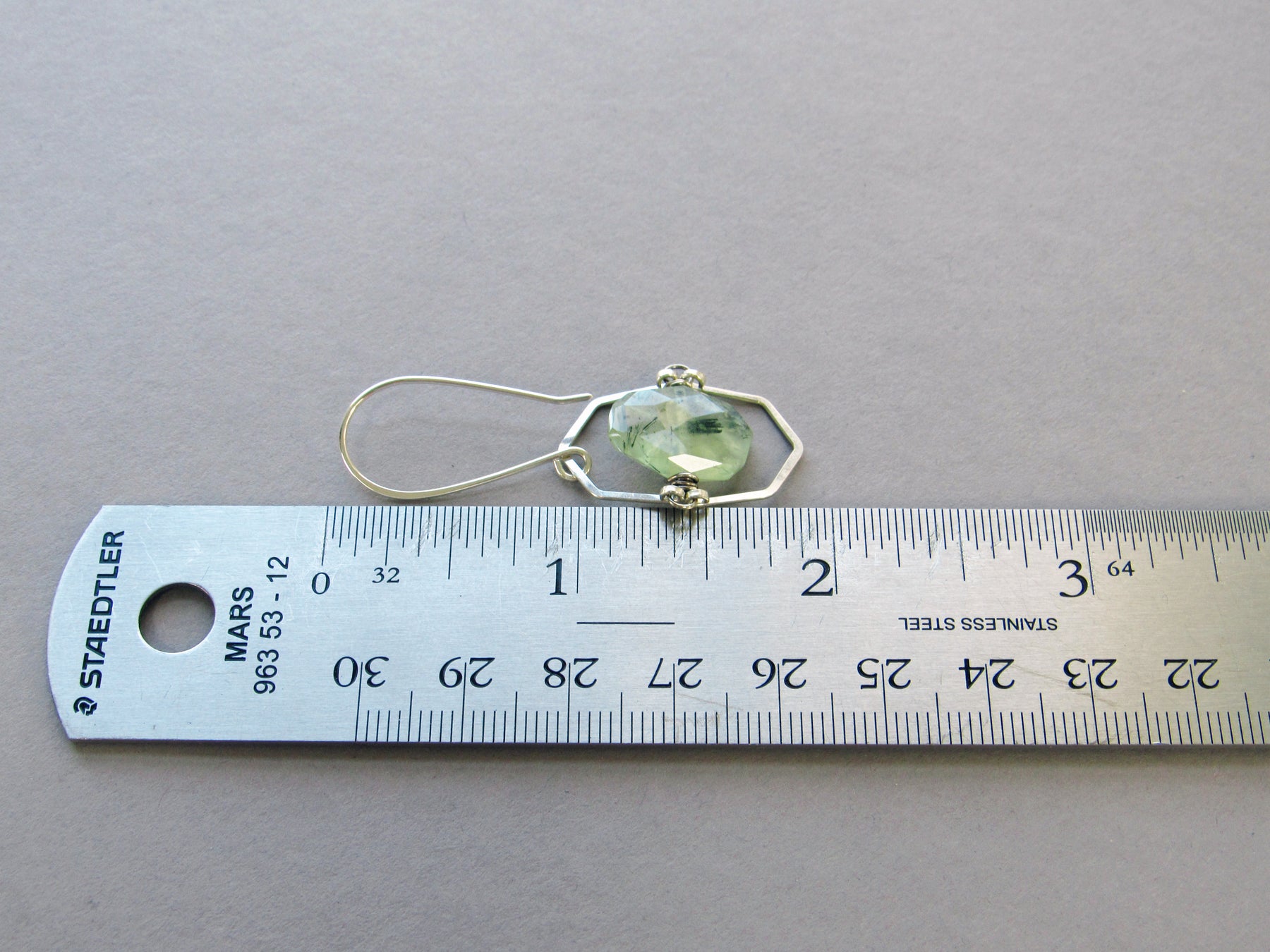 These earrings are sure to turn heads with their geometric chevron shape and luminous prehnite gems! Size: about 1 7/8" in total length.