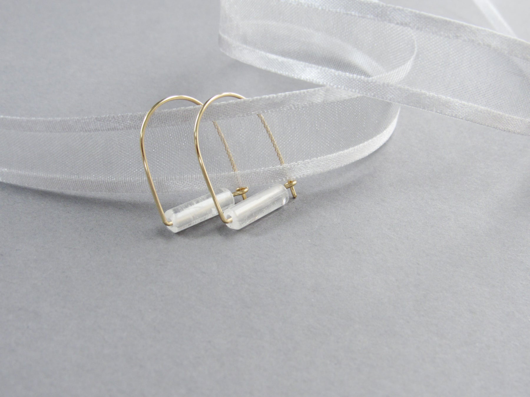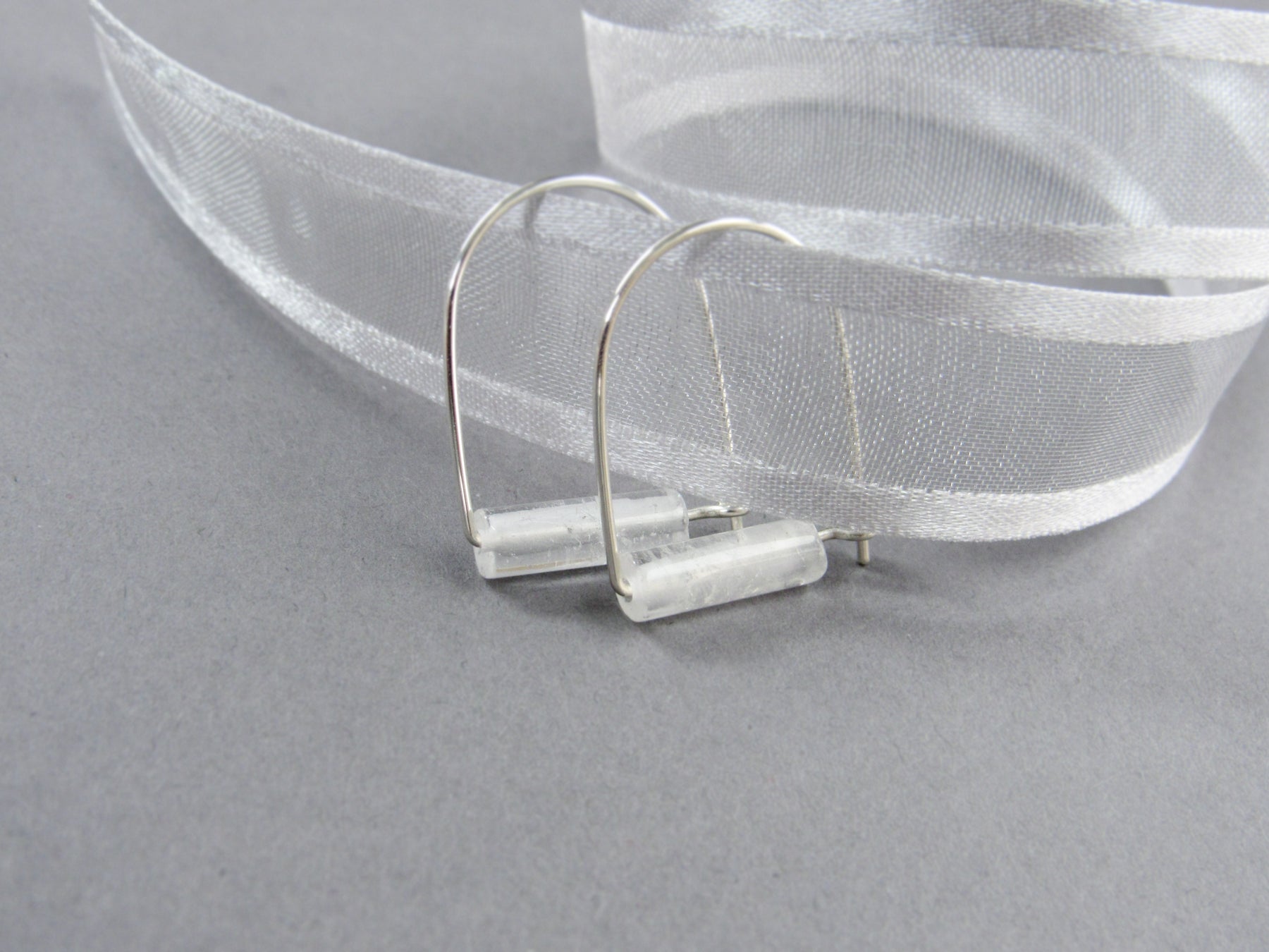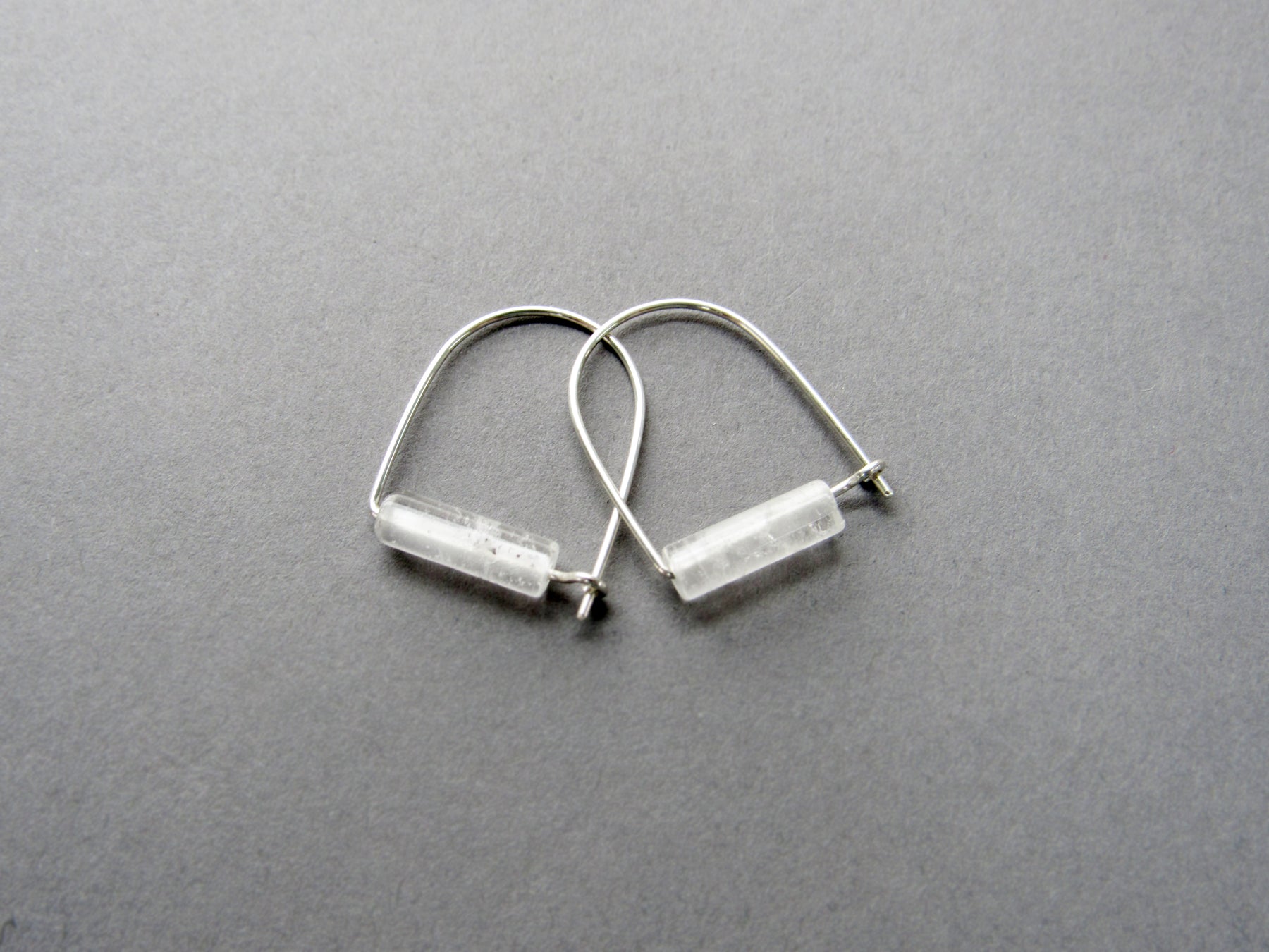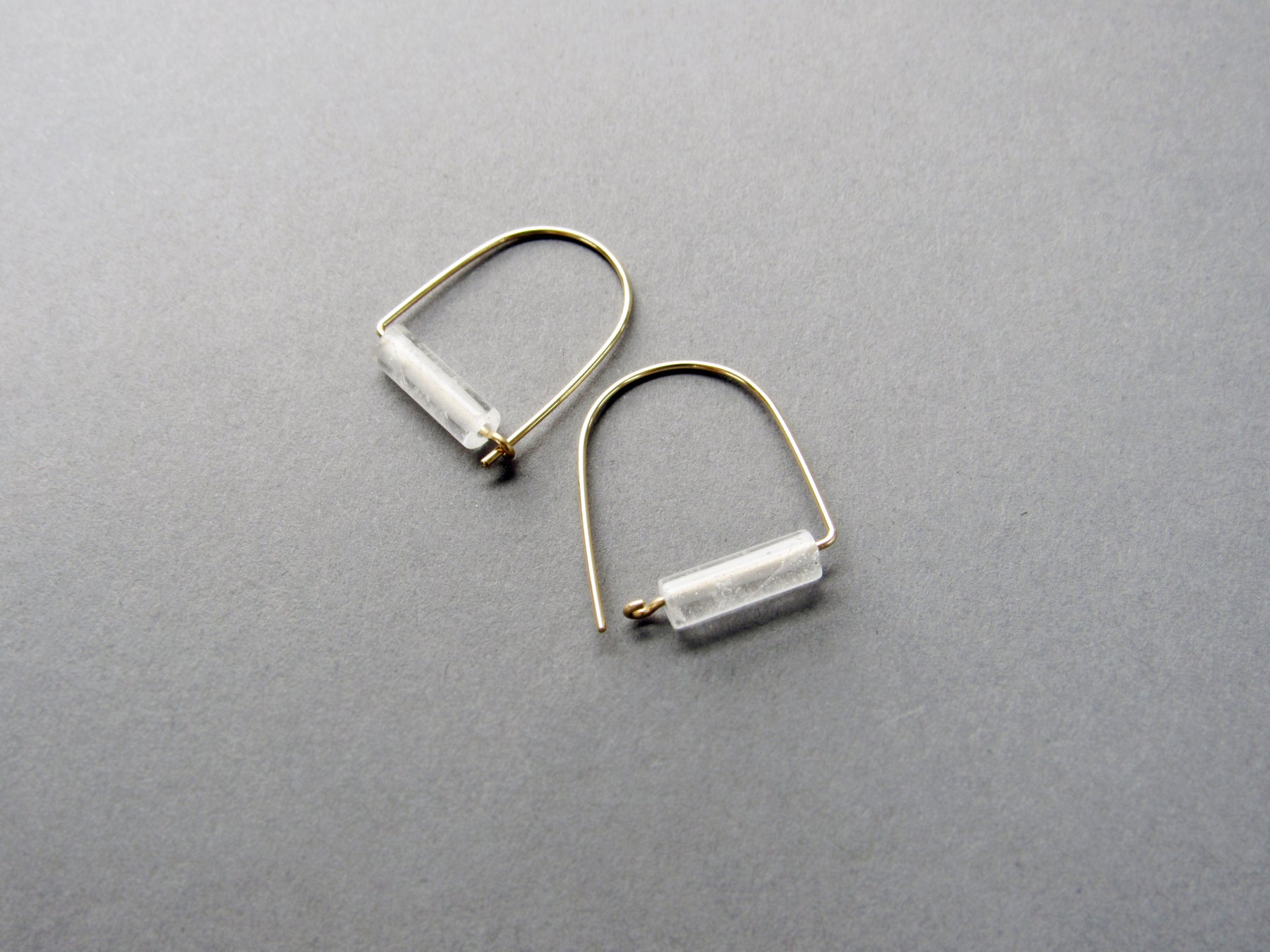 These natural crystal quartz gemstones are a lovely clear-white color. Some will be slightly more opaque than others. They are set on my version of a "hoop" ear wire that latches in the back. Hand-formed with 20 gauge solid sterling silver OR 14k gold fill wire. *Please Note: Each set is hand-selected but color will vary slightly due to the stone's natural qualities, see all photos.