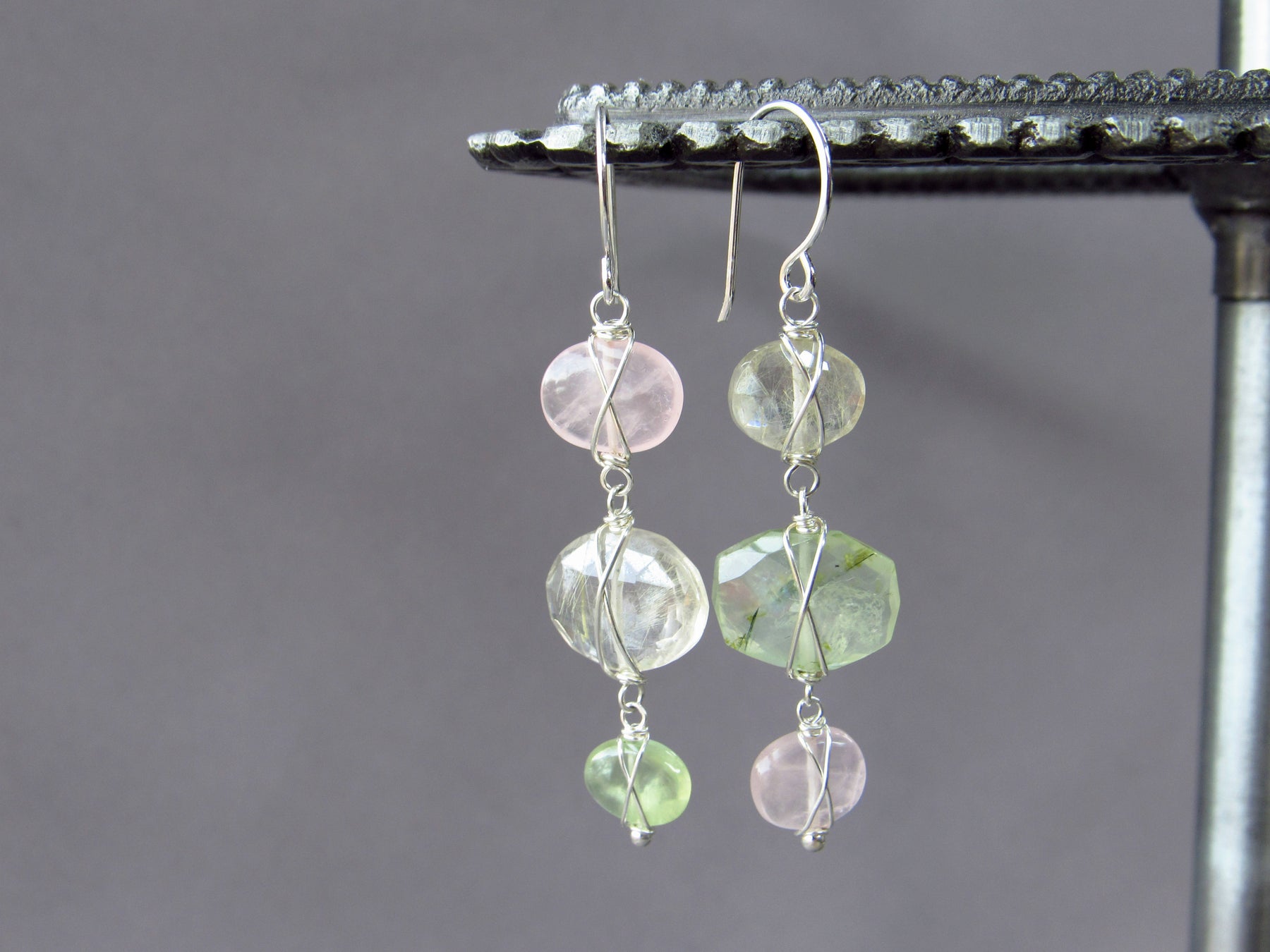 The gemstones are each securely wire wrapped in my signature crisscross style. The ear wires are formed by hand in our studio with 20 gauge wire and are lightly hammered for strength and style. *All of metal used is solid sterling silver.